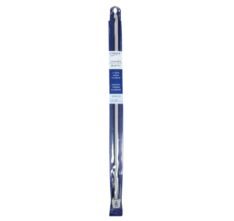 Ce crochet tunisien en aluminium est idéal pour réaliser des projets en crochet afghan. Sa longueur de 30 cm permet de maintenir plusieurs mailles à la fois, parfait pour les ouvrages plus larges comme les couvertures, foulards et panneaux.